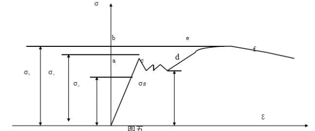 低碳钢的拉伸初级阶段,s与e关系为直线oa,按虎克定律:s=E×e,式中E为与材料有关的比例常数,称 为弹性模量。直线oa的较高点a所对应的应力,用sp来表示,称为比例极限。见图1: