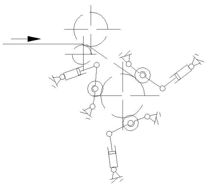 助卷辊:一般设有三个助卷辊沿圆周方向120度均布,起到压紧带钢头几圈的作用。武钢1700热轧卷取机助卷辊采用气动式的压紧方案,如图所示。