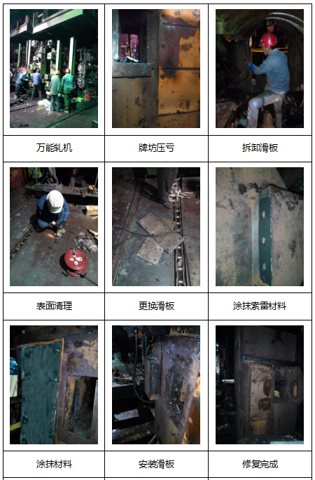 针对轧机牌坊磨损问题,小编推荐使用索雷碳纳米聚合物材料利用滑板与轧机牌坊的配合关系进行现场修补轧机牌坊磨损部位,恢复尺寸。材料优点是: