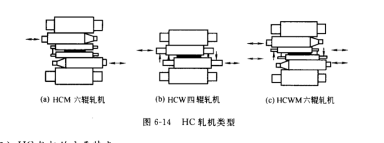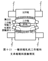 HC 轧机是一种高性能辗型凸度控制轧机,这是具有轧辊轴向移动装置的轧机。这种轧机的辊缝是刚性辊缝型。其基本出发点是通过改善或消除四辊轧机中工作辊与支承辊之间有害的接触部分,来提高辗缝刚度的,如图6-13 所示。